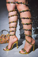 Always be the girl everyone remembers! Slide in these Panus high heels and dance the night away. Available in black and gold.