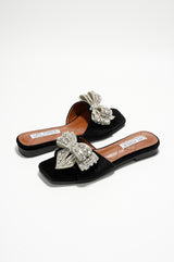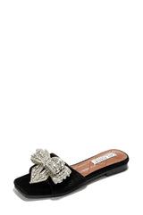 Ribbona Rhinestone Bow Slide Sandals - Black