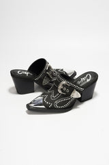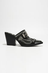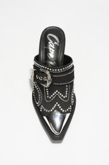 Viv Rhinestone And Buckle Decor Denim Pointed Heel - Black