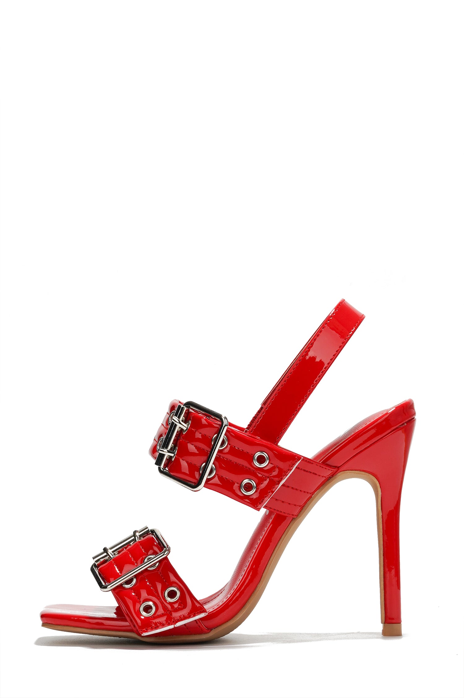 The Winonah heels feature bold double buckle straps with silver eyelet details, adding a daring and edgy touch to your look. Perfect for a night out, these heels pair effortlessly with both casual and formal outfits. Available in bold red, chic leopard print, and modern clear, these heels are a must-have for any fashion-forward wardrobe.