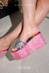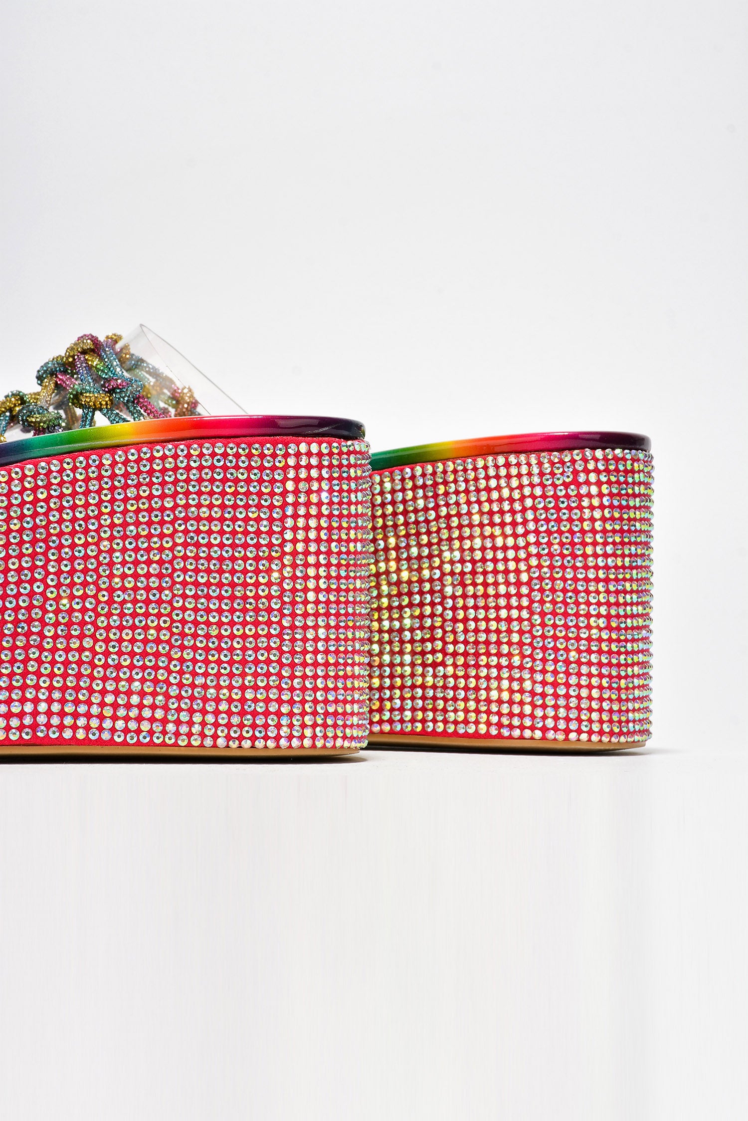 Yelena Round Toe Rhinestone Rope Platform - Rainbow